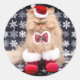 Pegatina Redonda Gato de navidades