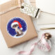 Un gato sensual, gracioso, lindo, tonto del Himalaya en sombrero Santa rodeado de copos de nieve en ilustracion digital. Ideal para cualquier artículo de vacaciones. ¡Lleno de espíritu Navidad!
