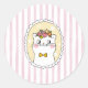 Pegatina Redonda Gato de Rayas Rosadas