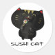 Pegatina Redonda Gato de sushi negro lindo kawaii