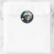 Pegatina Redonda Gato de Tabby Gris con Sombrero Verde en Vidrio Em