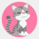 Pegatina Redonda Gato de tabla gris muy sonriente