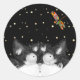 Pegatina Redonda Gato de Tuxedo sorprendido por libélula