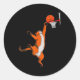 Pegatina Redonda Gato divertido Jugando Baloncesto Deportes Gato Ba