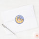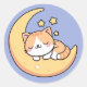Un diseño pegatina, alegre y caprichoso, con un naranja personalizado y un gato blanco gatito durmiendo tranquilamente en una luna creciente amarilla. El fondo es un cielo azul calmado, adornado con tres brillantes estrellas amarillas. Perfecto para los amantes de los gatos, este diseño adorable capta una atmósfera de ensueño y acogedora.