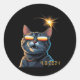Pegatina Redonda Gato Eclipse Solar 2024 Usando Gafas Eclipse