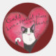El dibujo de la cara de un lindo gato de esmoquin en forma de corazón con las palabras," El gato tiene un lugar especial en mi corazón". Algunos diseños están en contra del gingham rojo y blanco mientras que otros son de color sólido. Diseño original de Christie Black de Creations from the Heart.