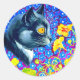 Pegatina Redonda Gato en flores