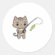 Pegatina Redonda Gato en la pesca con barra de pesca