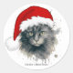 Pegatina Redonda Gato En Santa Hat Feliz Navidad