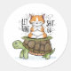 Añade un toque de encanto y de capricho a tus pertenencias con nuestro encantador pegatina "Cat on Turtle"! Este divertido e imaginativo diseño presenta un curioso gato encaramado cómodamente sobre una tortuga amigable, que captura un momento único y juguetón que seguro le dará una sonrisa a la cara a cualquiera.