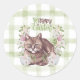 Una pegatina de gato de Pascua dulce que presenta un adorable gatito rodeado de flores de primavera, sobre un encantador fondo de gingham verde. Este dulce diseño trae colores pastel suaves y vibras alegres de primavera. Perfecto para agregar un toque de magia de Pascua a tus objetos cotidianos.