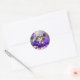 Pegatina Redonda Gato gatito lindo en bola de hilo púrpura