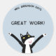 El gato gracioso Gran Trabajo del profesor anima a los pegatinas a que les hagan saber a sus alumnos qué gran trabajo están haciendo en la escuela. Cambiar el nombre del profesor y el mensaje de aliento para personalizar. Arte original de Nic Squirrell.