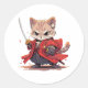 Pegatina Redonda Gato Héroe estilo Samurái Enojado