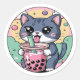 Pegatina Redonda Gato Kawaii con té de burbuja - Palo para los aman