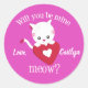 Pegatina Redonda Gato lindo de San Valentín Kitty Rosa