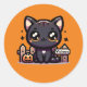 Pegatina Redonda Gato malvado de gatito de Halloween Kitten