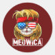 Pegatina Redonda Gato Meowica Mullet Bandera Estadounidense Patriót