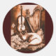 Pegatina Redonda GATO MUSICAL, marrón y blanco