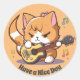 Pegatina Redonda Gato Naranja Divertido Toca la Guitarra