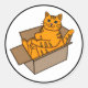 Un gato naranja personalizado dibujado a mano, sentado en una caja de cartón.