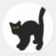 Pegatina Redonda gato negro arqueado hacia atrás