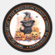 El gatito negro de acuarela más lindo con un sombrero de brujas y rodeado de jack-o-lanterns y calabazas diseño circular de dirección de devolución. Simplemente personalice con su nombre o apellido y dirección de devolución, ciudad, estado y código postal.