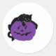 Pegatina Redonda Gato Negro En Una Calabaza Morada