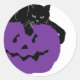 Pegatina Redonda Gato Negro En Una Calabaza Morada