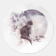 Pegatinas con una pintura acuarela de un gato negro y un ramo floral rosa y violeta. Frente a una gran luna llena. Elegante y mágico.