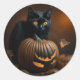 Pegatina Redonda Gato negro y Jack-O-Lantern