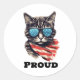 Pegatina Redonda Gato patriótico americano, 4 de julio