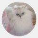 Pegatina Redonda Gato persa blanco en una silla rosa