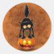 Pegatina Redonda Gato Personalizado asustado de Halloween en calaba