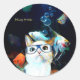 Pegatina Redonda Gato Pescado Sushi Humor Gracioso Fantasía Pegatin