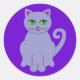 Este elegante ilustracion de gatito morado tiene un felino kitschy perwinkle con ojos verdes brillantes y una bonita cola giratoria. ¡Esta obra de arte de gatos es el regalo perfecto para comprar a un amante del gato y a todo aquel que ame el arte original hermoso!