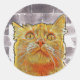 Pegatina Redonda Gato Rojo en Problemas.