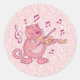 Pegatina Redonda Gato rosa con violín