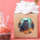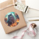 Pegatina Redonda Gato siberiano de Halloween con calabazas aterrado