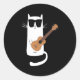Pegatina Redonda Gato usando gafas de sol jugando a Ukulele