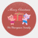 Pegatina Redonda Gatos festivos con Navidades rojos de la caja de r