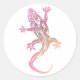 diseño de tatuajes decorativos de un pequeño gecko, lagarto o reptil en colores rosados sobre un pegatina