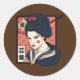 Pegatina Redonda Geisha Chica japonés kawaii en Kimono Geisha Chica