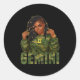 Pegatina Redonda Gemini Queen Loc'd Black Woman Camo Zodiac Sign