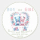 Pegatina Redonda Género revelar ducha de bebé Teddy Bear rosa azul