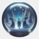 Pegatina Redonda Gente Pequeña En Un Globo De Nieve
