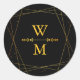 Pegatina Redonda Geometric Black and Gold Monogram Wedding Favor