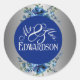 Pegatina Redonda Ghear in Love: Blue Petals & Silver Monogramed