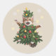 Pegatina Redonda Ginger Naranja Cat Árbol navideño lindo navidad na